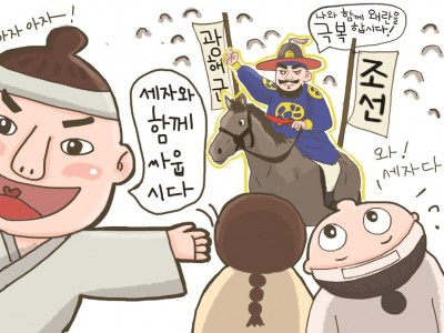 1592년 임진왜란이 일어났어요. 그런데 그때까지 조선은 아직 세자를 정하지 못하고 있었어요. 전란 중에 임금이 잘못될 수도 있어 세자 책봉은 굉장히 중요한 일이었어요.사실 광해군은 임금의 후궁인 공빈 김씨에게서 태어났을 뿐만 아니라, 심지어 둘째 아들이었기 때문에 세자 책봉과는 거리가 멀었어요. 그런데 당시 적자는 없었고, 형인 임해군은 말썽을 자주 일으켰어요. 반면 동생 광해군은 어질고 총명하였지요.왜군들의 기세는 거침이 없었고, 전쟁 상황은 점점 더 조선에게 불리하게 돌아가고 있었어요. 만일의 경우에 대비해 세자를 빨리 정해야 한다는 여론이 일어났고, 선조와 신하들은 광해군을 세자로 결정했어요. 그렇게 세자가 된 광해군은 선조를 따라 피난길에 올랐어요.“전하, 이 땅을 버리고 떠나시면 나라는 어찌되겠습니까?”“그렇습니다. 백성은 누구를 의지하고 살란 말씀이옵니까?”신하들의 반대가 있었지만 결국 선조는 중국에 원병을 청한다는 구실로 급히 의주로 피난하였어요.이때 세자 광해군은 선조를 대신해 전란을 지휘하였어요. 그러자 분전하는 세자의 소식을 듣고 합류하는 사람들이 늘어갔어요. 도망가는 조정을 보며 흩어졌던 민심도 다시 모이기 시작했지요.“세자께서 비바람 속에서도 산중에서 조선을 이끌고 있소”“와~ 이제 우리도 왜군들에 맞서 …